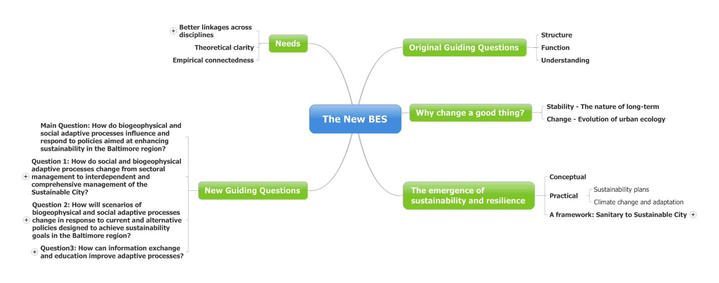 The original guiding questions for the Baltimore Ecosystem Study (BES) are instances of the three most fundamental things that researchers can ask: How is the system I am interested in put together and how does it change through time? How does the system interact with and influence matter and energy flows? What difference does this knowledge make?